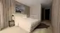 Dieses elegante 2-Schlafzimmer-Apartment (für 3-4 Personen) befindet sich im 1. Stock. Es verfügt über ein Hauptschlafzimmer mit begehbarem Kleiderschrank und ein Einzelschlafzimmer. Das Hauptschlafzimmer bietet Zugang zum Badezimmer und zur Sauna mit Dusche. Sowohl Wohn- als auch Schlafzimmer führen auf den ca. 12m² großen Balkon.
