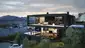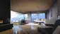 Der offene Wohnbereich vereint Natürlichkeit und Moderne. Raumhohe Fenster eröffnen einen herrlichen Weitblick und die Ausstattung aus Holzlamellen-Decken, Fischgrätböden und Wänden in Betonoptik schafft ein besonders hochkarätiges Raumklima.