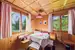 Die Stube, dominiert von natürlichem Holz, verströmt eine harmonische und gemütliche Atmosphäre – ein Ort, an dem man gern zusammensitzt, lacht oder einfach nur den Blick in den Wald schweifen lässt.