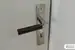 Die Eingangstür ist eine Designer - Sicherheitstür von Wippro, weiß seidenglänzend lackiert. Die Innentüren sind hochglänzend lackierte MDF-Türen mit Edelstahl Beschlag und Ledergriff.