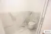 Hier befinden sich auch Vorraum mit Handwaschbecken und eine geräumige Toilette.