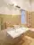 + Badezimmer mit Badewanne, Dusche, Doppelwaschtisch, Sprossenheizkörper und WC