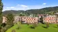 Der großzügige Wohnbereich ermöglicht vielseitige Nutzung und bietet Zugang zur Loggia, welche eine Aussicht auf die umliegende Berglandschaft bietet.