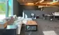 Durch die offene Raumaufteilung, die rustikalen Holzbalken und die Kombination von Schaufläche und Arbeitsbereich entsteht ein kreativer und funktionaler Arbeitsplatz.