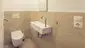 Die Böden sind mit Landhausdielen in Eiche ausgelegt, im Bad wurden helle Fliesen gewählt, die den Raum großzügig und freundlich wirken lassen.