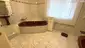 • Badezimmer mit Eckbadewanne, Dusche, Doppelwaschbecken und WC