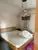 Das große Badezimmer ist mit einer Badewanne und Dusche ausgestattet.