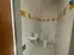 Das Badezimmer ist mit einer komfortablen Badewanne ausgestattet, ideal für entspannende Momente nach einem langen Tag. Eine separate Toilette sorgt für zusätzlichen Komfort und Privatsphäre.