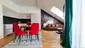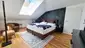 Vom Vorraum aus gelangt man in das WC und den angrenzenden Wohnraum mit Küche und Schlafbereich. Wem das Wohnkonzept zu offen gestaltet ist, kann den Schlafbereich mit einem Raumteiler abtrennen. Dank 2 Dachflächenfenstern und einem Balkon ist das Loft lichtdurchflutet. Angrenzend an den Schlafbereich findet man das Badezimmer mit verglaster Dusche & Handtuchtrockner und weiter den Dachraum der extra Stauraum bietet.