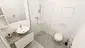 + Bad mit bodenebener Dusche, Waschtisch/Spiegelkombination und WC