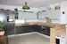Der große Wohn- und Essbereich eröffnet vielfältige Nutzungsmöglichkeiten. Die hochwertige Dan-Küche ist mit einem hochgestellten Geschirrspüler ausgestattet, was die tägliche Arbeit erleichtert. Der Küchenboden besteht aus elegantem Feinsteinzeug, während der restliche Bodenbereich mit hochwertigem, gebürstetem Bambusparkett versehen ist.