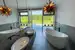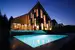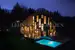 Das Highlight der Immobilie ist der ca. 56 m² große, offen gestaltete Wohn- und Essbereich. Mit einer beeindruckenden Raumhöhe von bis zu 7,50 m und einer markanten Holzbalkenkonstruktion entsteht ein unverwechselbares Wohngefühl. Diese prägt nicht nur die Optik, sondern bildet das charaktergebende architektonische Element – eine perfekte Symbiose aus moderner Klarheit und alpinem Flair. Großflächige Fensterflächen eröffnen den Blick auf die private Terrasse und den stilvoll integrierten Pool – ein Ort der Ruhe und Erholung, eingebettet in die Natur der Waldrandlage.