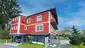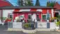 Die kräftige rote Fassade des Haupthauses verleiht der Immobilie einen unverwechselbaren Charakter und sorgt für ein einladendes Erscheinungsbild.