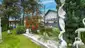 Der Garten ist eine grüne Wohlfühloase: liebevoll angelegte Beete, Ziersträucher, Skulpturen und ein kleiner Teich schaffen eine besondere Atmosphäre.