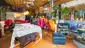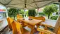 Mehrere Sitzmöglichkeiten – vom überdachten Pavillon mit rustikaler Holzsitzgruppe bis zur sonnigen Terrasse mit Lounge – laden zum Verweilen ein.