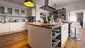 Die moderne Einbauküche fügt sich harmonisch in das Raumkonzept ein und bietet mit ihrer zentralen Kochinsel und hochwertigen Geräten den idealen Ort für kulinarische Kreationen.