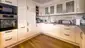 Die Küche überzeugt mit einer praktischen Aufteilung, modernen Geräten und einem direkten Zugang zum Esszimmer – perfekt für gemeinsame Mahlzeiten oder festliche Anlässe.