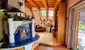 EG: Wohnbereich mit Küche (Vollholz) und Kachelofen, WC, Arbeitsraum (Peter Max), Garderobe (Vollholz)