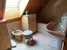 Vom Flur aus geht es in ein Bad mit Dusche, einem extra Wc mit Waschbecken, der geräumigen Küche und dem großen Wohn-/Esszimmer, welcher mit einem Holz-Kachelofen ausgestattet ist. Die Küche ist durch eine Tür zusätzlich mit dem Wohnzimmer verbunden.