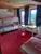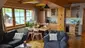 Apartment-Wohnküche mit Kachelofen und drei Tischen für 15 Personen (ca. 32m²)