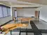Vor dem Großraum-Büro ladet eine überdachte Terrasse mit Blick auf einen Teich für Besprechungen im Freien ein.