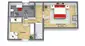 Das Obergeschoss teilt sich in zwei Zimmer sowie ein Badzimmer auf.